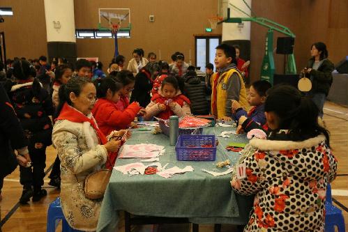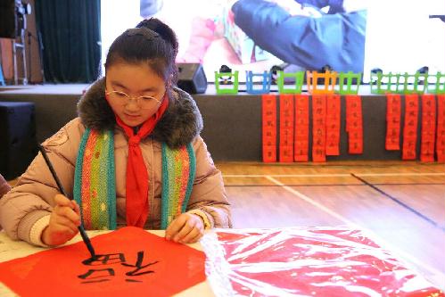 为了本次活动的顺利进行,我校总务处、美术组、德育处与四年级全体师生群策群力,共同备战筹谋。老师们精心制作展板,准备工具;同学们亲手绘制帽子,书写增喜增福的对联和福字,创作充满艺术气息的画作和剪纸作品……